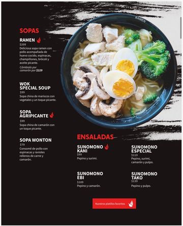 Esta sección del menú ofrece opciones calientes y reconfortantes con las Sopas, frescura con las Ensaladas, y una experiencia creativa con los Poke Bowls.